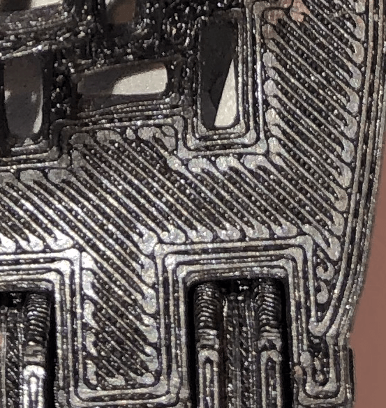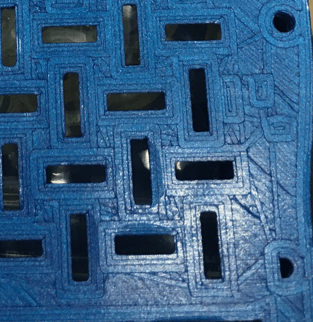 The parallel infill lines must touch each other along their entire length, and be in contact at their ends with the perimeter lines, without a gap or bulge.