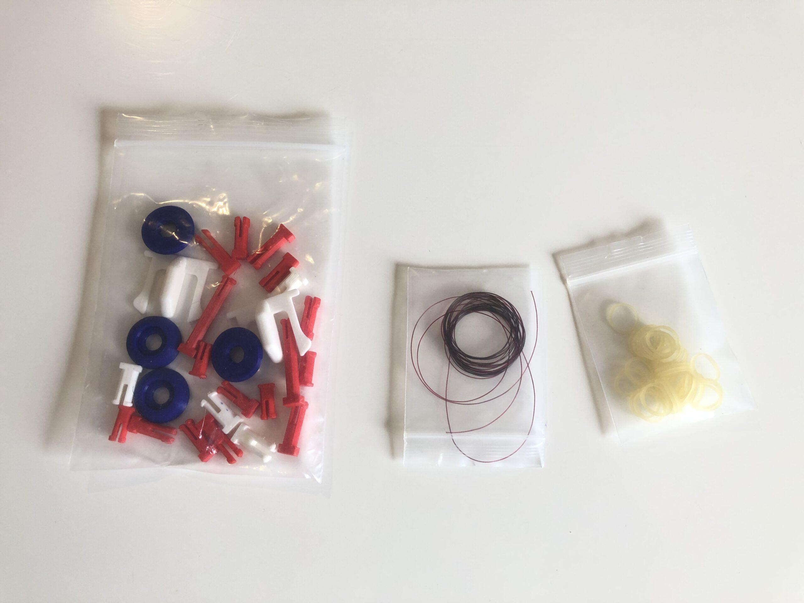 Providing one or two sets of small parts that can get lost or broken is a good idea (pins, washers, rubber bands, nylon thread).