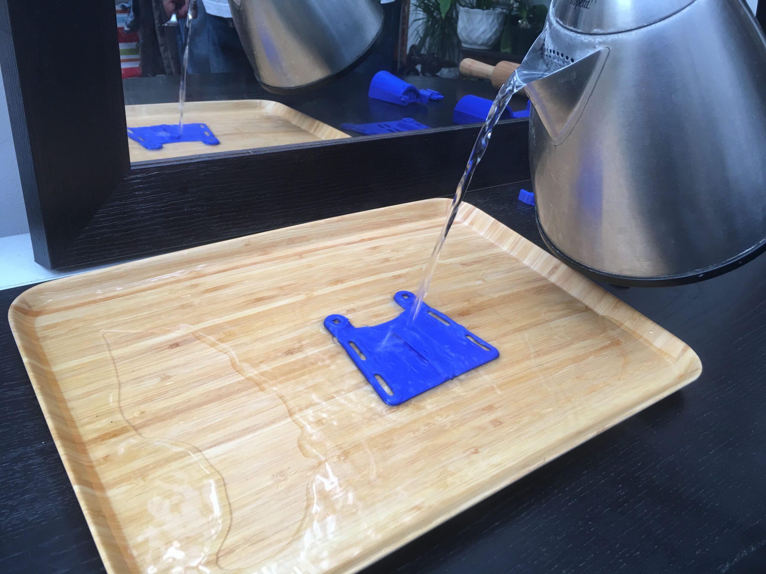 The glass transition temperature of PLA (the temperature at which it becomes soft) is between 60 and 80 ° C. Boiling water, a heat gun or even a hair dryer can be used for thermoforming. Thermoforming can be carried out in several batches without any problem.