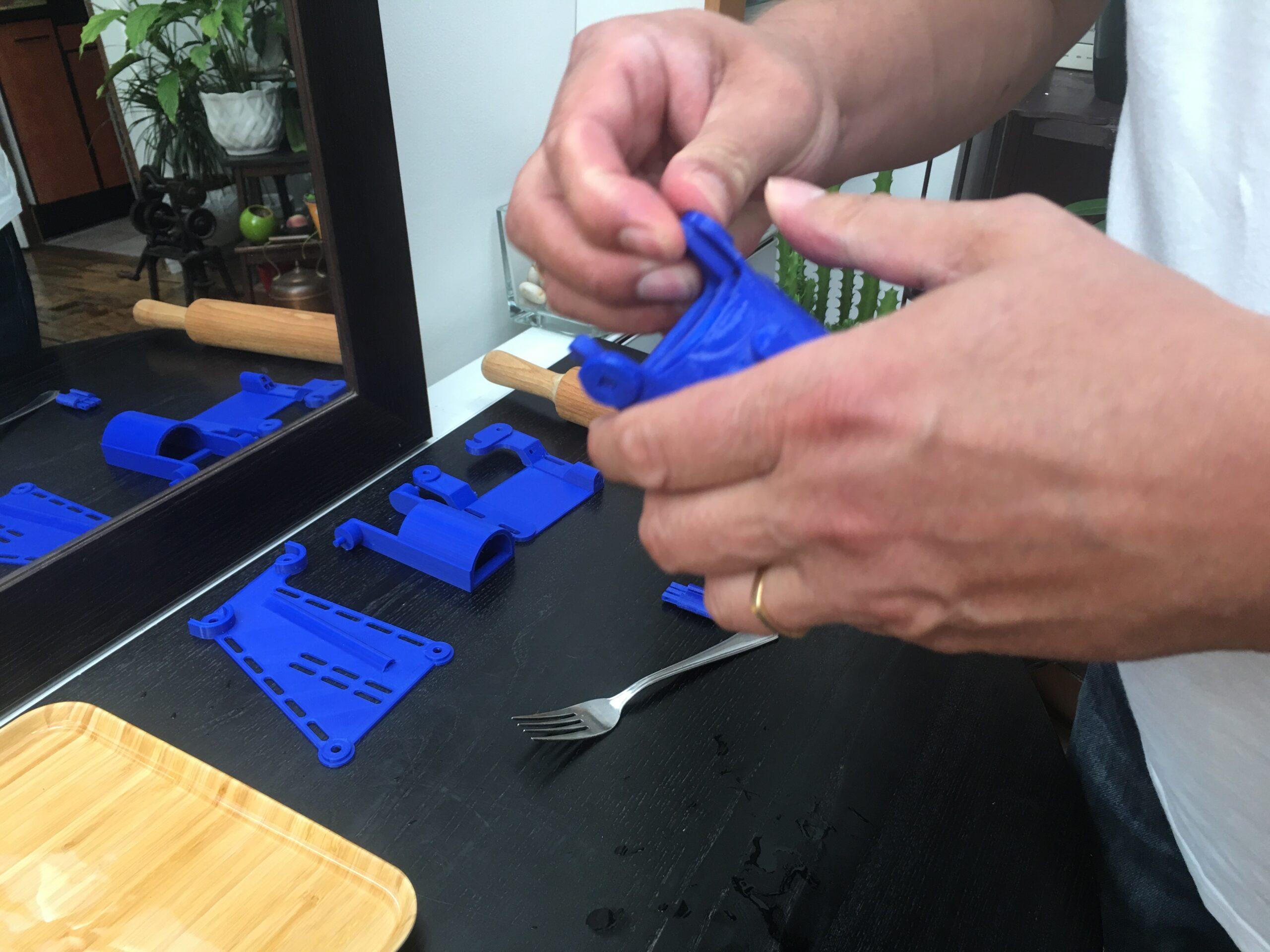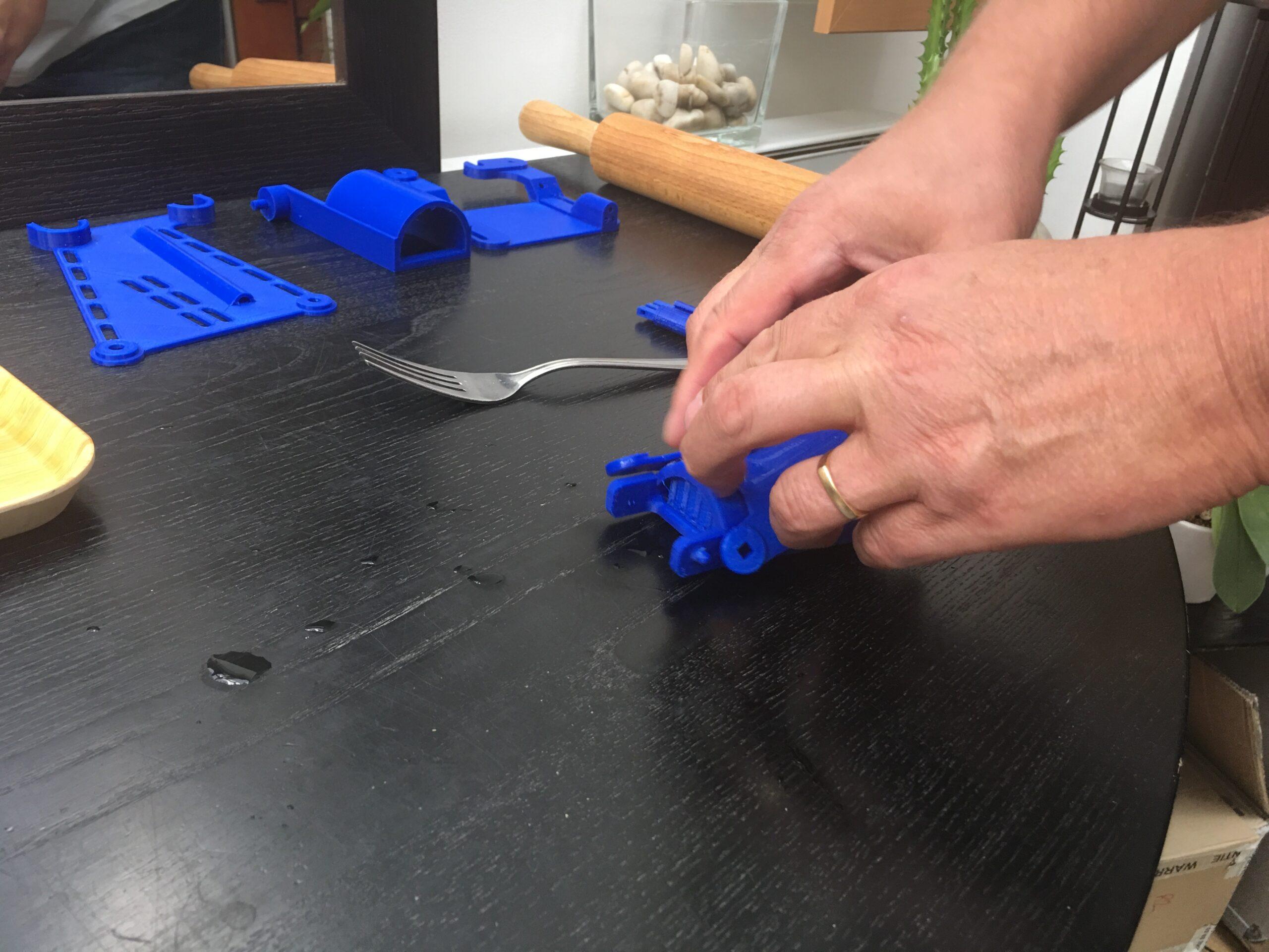 After about ten seconds the part is ready, take it without burning yourself and place it on the form (the Phoenix Unlimbited hand files come with a printable form that allows the gauntlet to be thermoformed very easily, for the unlimbited arm a pastry roller does the trick).